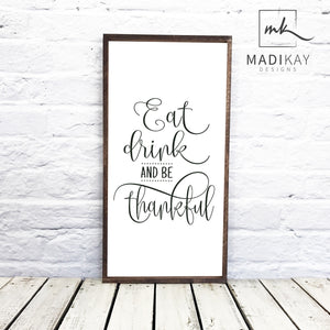 "Eat Drink and Be Thankful" Wooden Sign